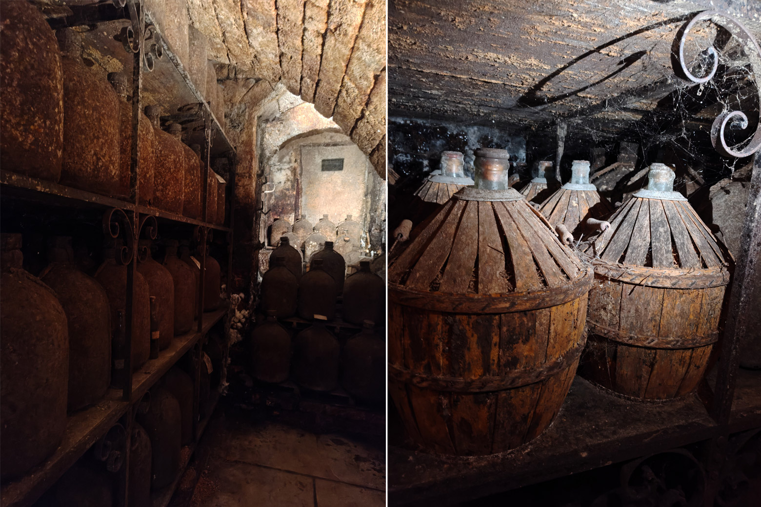 そして奥に移動し、1800年代の原酒が眠る保管庫へ。ここの保管庫はすべてダムジャン(ガラス瓶)用の保管庫となります。ここともう一か所あります(後述)。