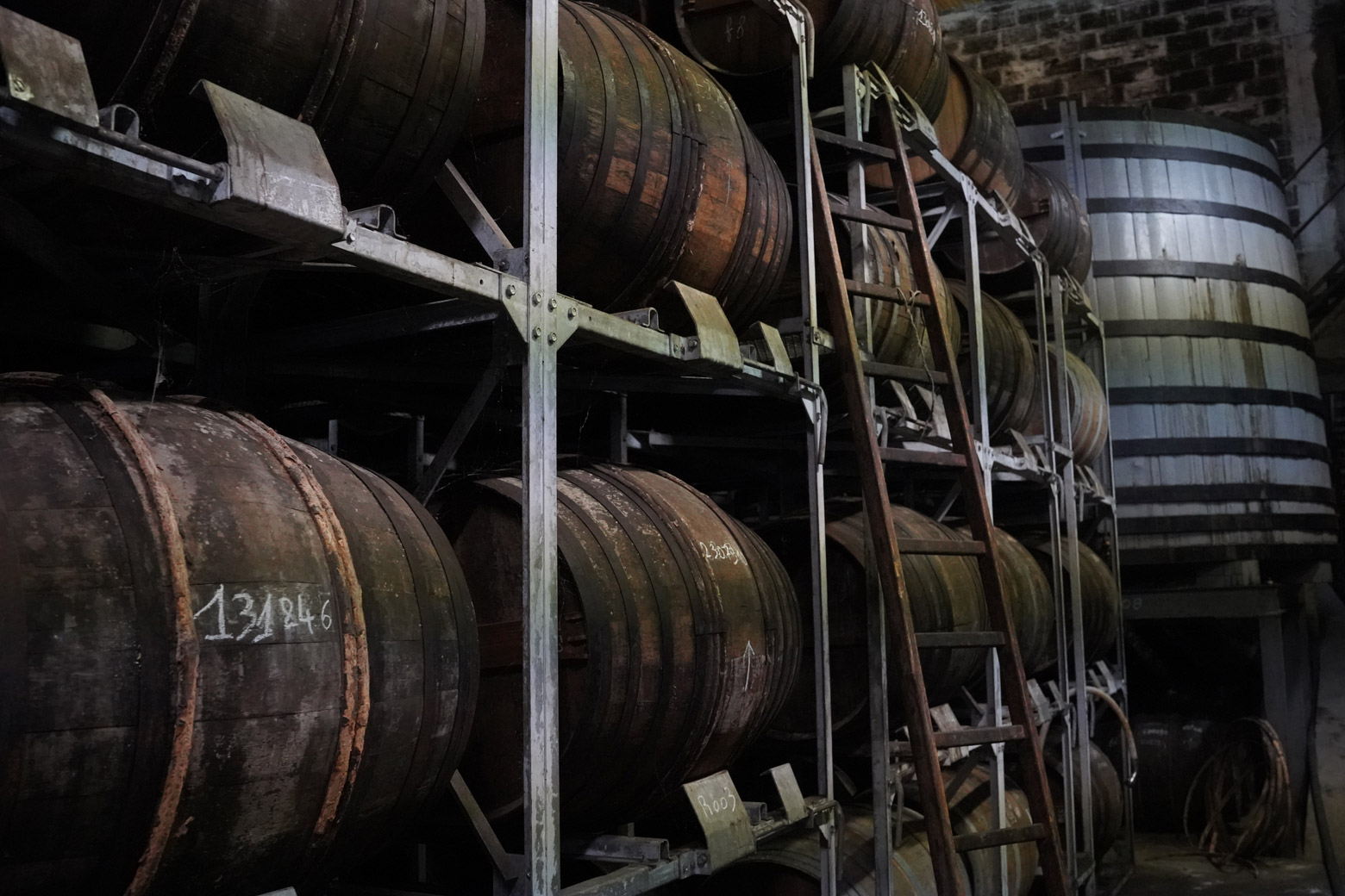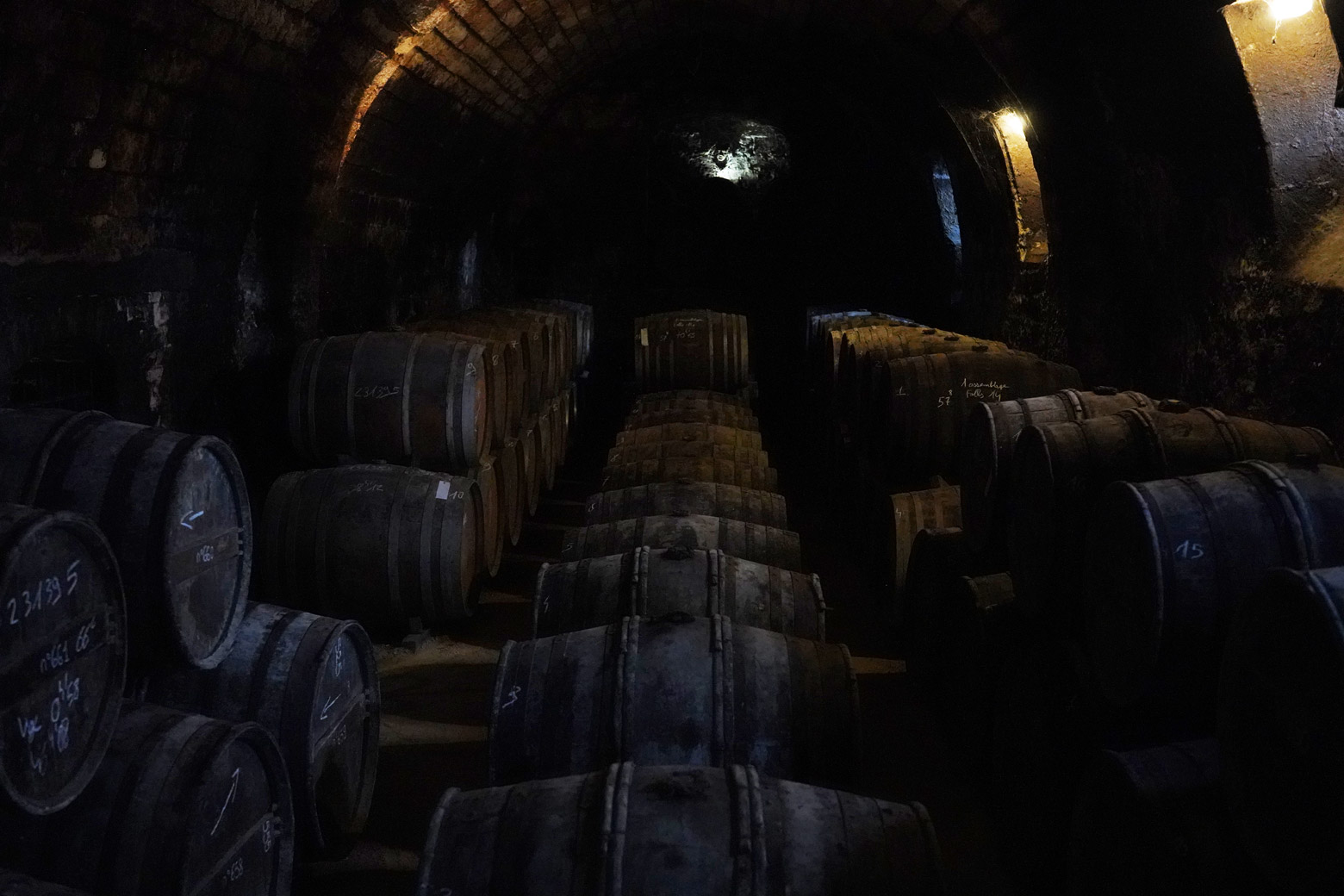 まずは若いコニャックやブレンド用の大樽が眠る熟成庫へ。